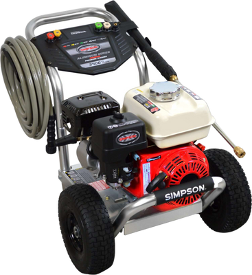 Built for professional grade performance, the SIMPSON® Aluminum Series 3400 PSI @ 2.5 GPM pressure washer is built to perform. With a powerful Honda engine, reliable triplex pump and ultra lightweight aircraft grade aluminum frame, this gas pressure washer is great for construction, equipment upkeep, facility & fleet maintenance cleaning. The ALH3425 is powered by a Honda engine and comes with a 35’ hose, an ergonomic spray gun and 5 Quick Connect nozzles.