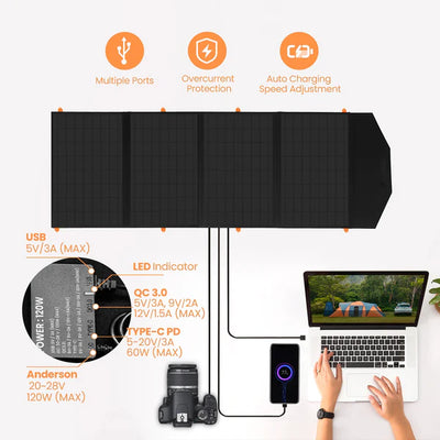 FlexSolar C120 120 Watt 19.8 Volt Foldable Portable Charging Station New