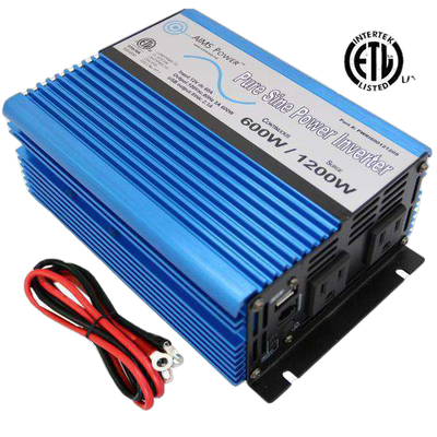 Aims Power PWRI60012120S 600 Watt Pure Sine Power Inverter w/ USB Port ETL Listed New
