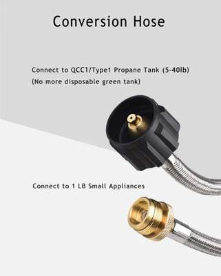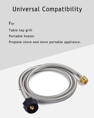 The ALP braided propane hose connects the ALP Propane Generator to either a 5 lb or 20 lb LP tank. |