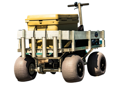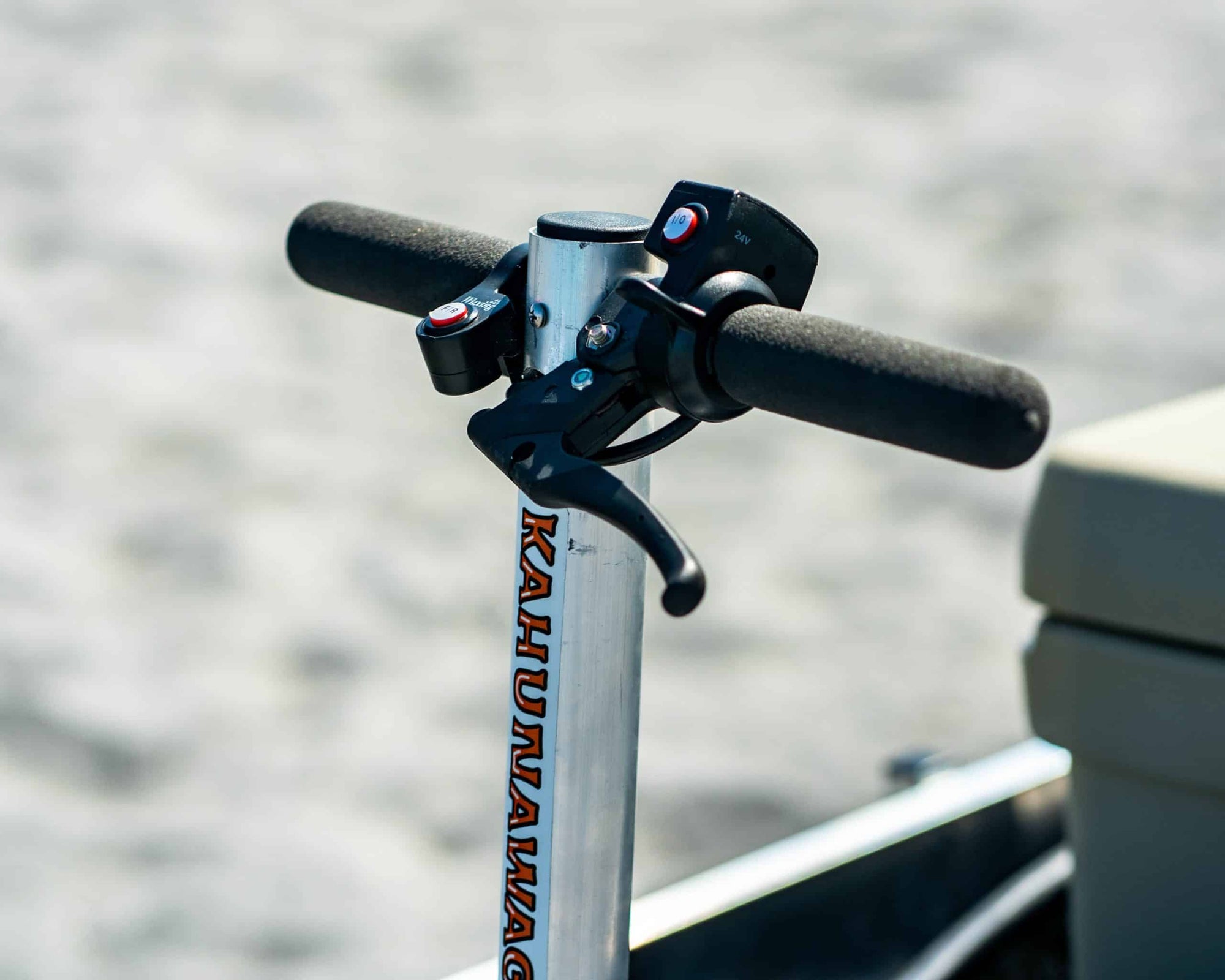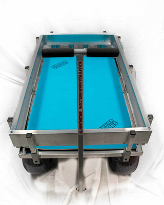 Our best selling Big Kahuna wagon is now powered with a 48 volt lithium ion battery with a fully enclosed direct gear drive with differential. The pull handle is equipped with a dual action throttle and hand grip start to ensure complete safety. The wagon powers in forward and reverse and also free pulls when pulling manually without the electric assist.