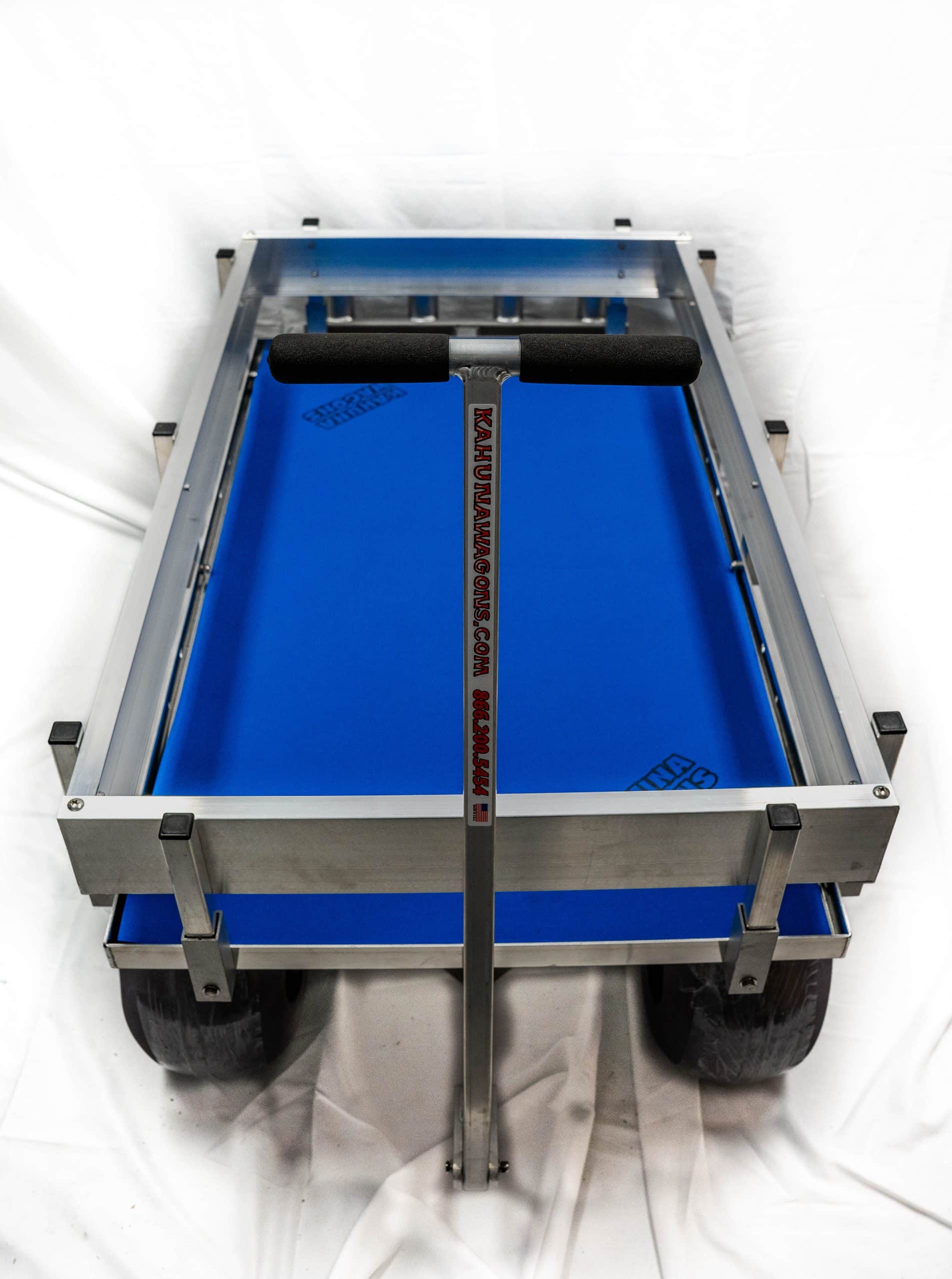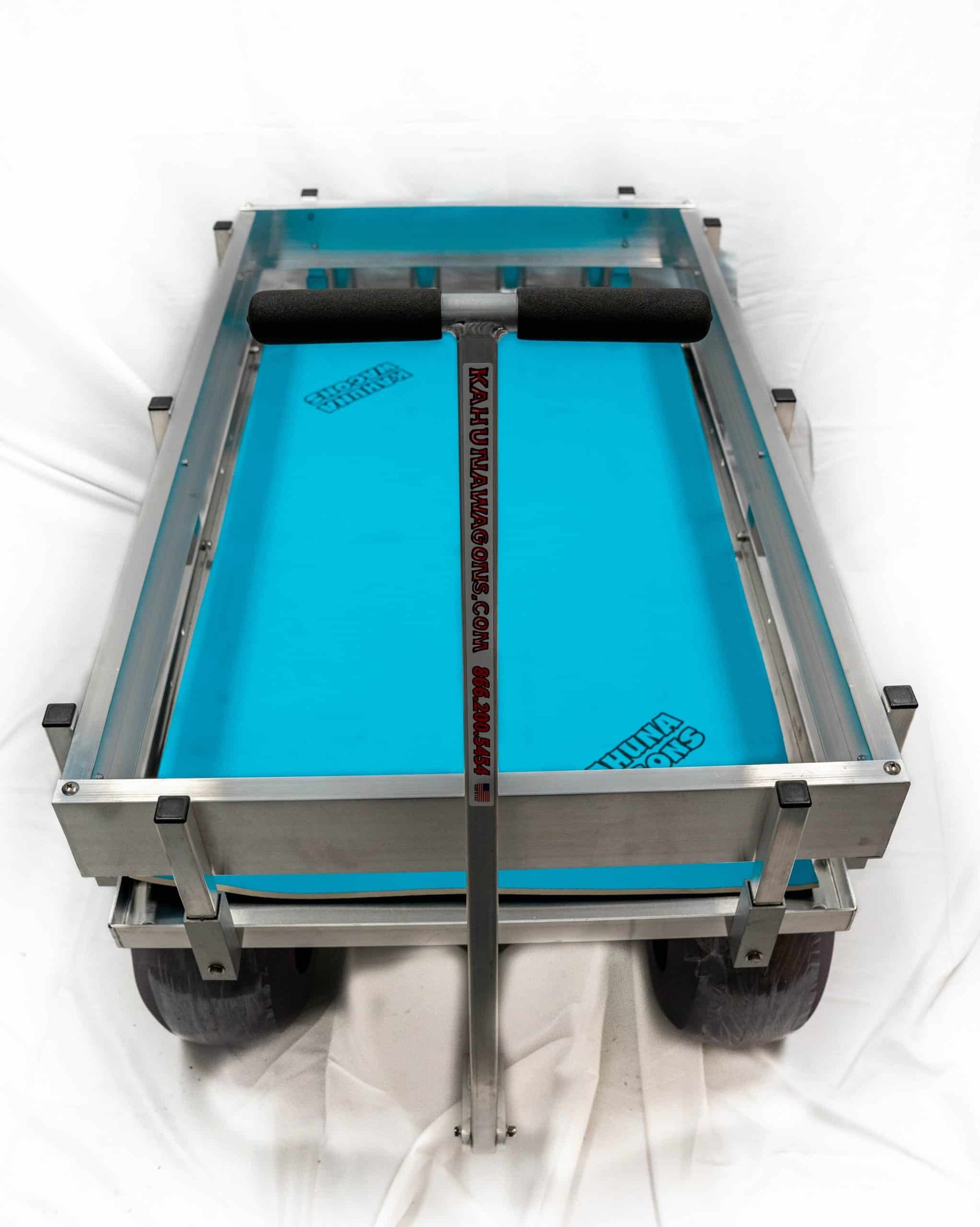 Strongest, most heavy duty beach wagon on the market and still the lightest! The Big Kahuna weighs 78 lbs. (105 lbs. with all electrical components included) 350 lb. load capacity.