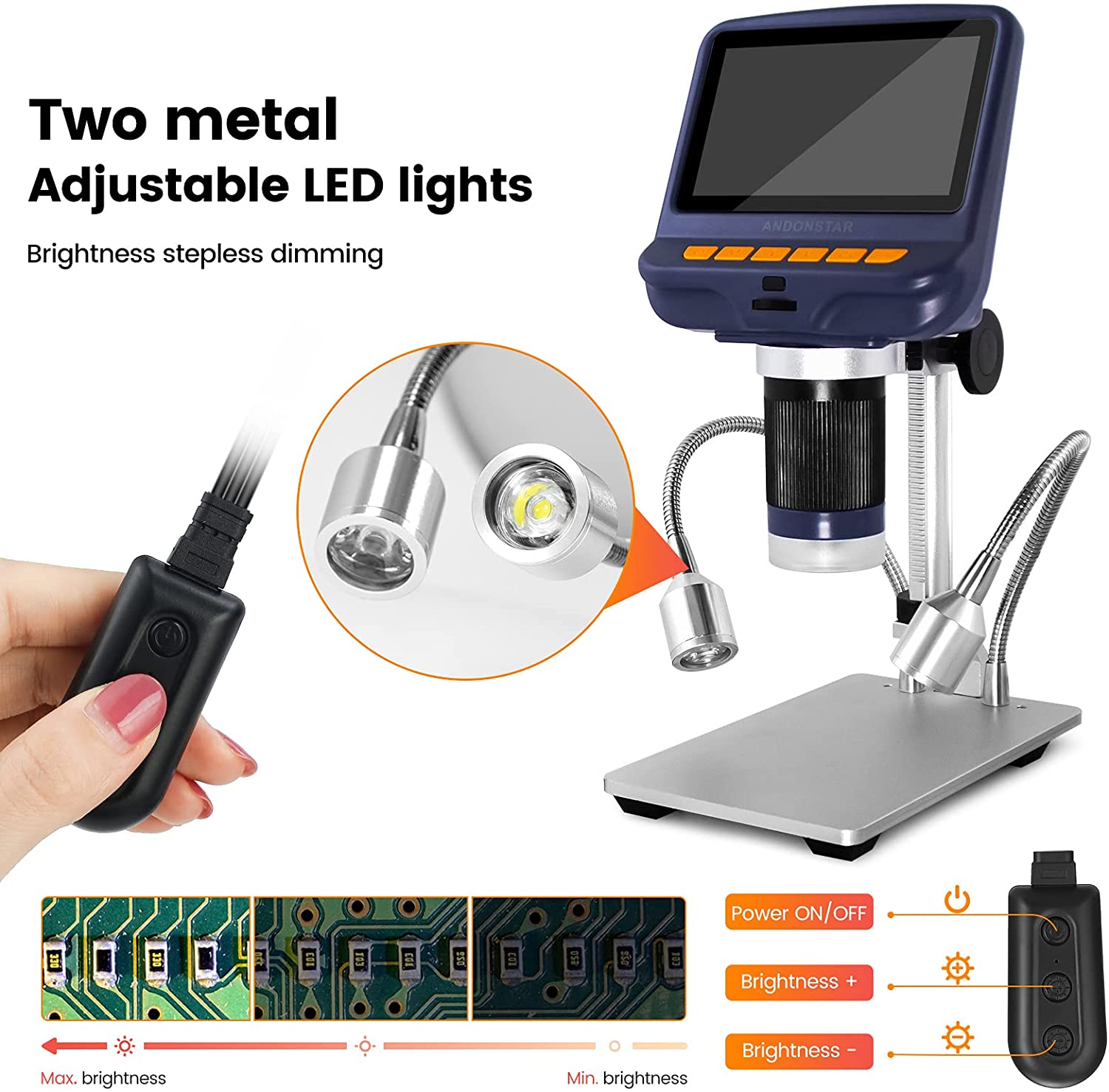As the unique combination of the high-quality image processing system, a stable metal stand and HD CMOS lens, this great Andonstar USB digital microscope can provide you with all functions for various use, such as precision measurements, image capture, documentation, traceable reports generation and so on.