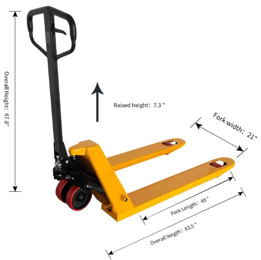 Apollolift A-1006 Manual Hydraulic Pallet Jack 5500 lbs. Capacity 48" x 21" New