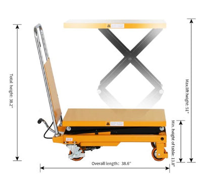 Apollolift A-2007 Double Scissor Lift Table 770 lbs. 51.2 " Lifting Height New