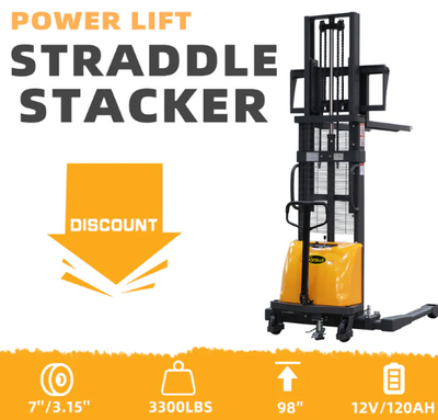 Apollolift A-3011 98" Lifting Height 3300 lbs. Capacity Power Lift Straddle Stacker New