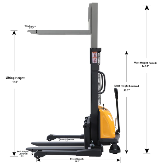 Apollolift A-3012 118" Lifting Height 3300 lbs. Capacity Power Lift Straddle Stacker New
