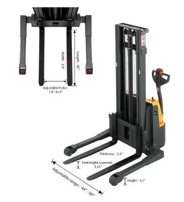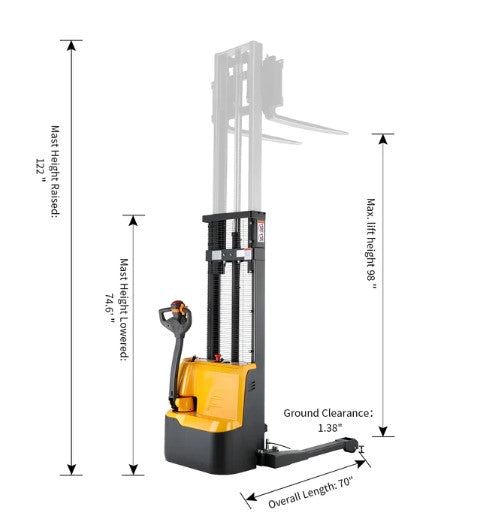 Apollolift A-3038 Powered Forklift Electric Walkie Stacker with Straddle Legs 2640 lbs. Capacity 98" Lifting New