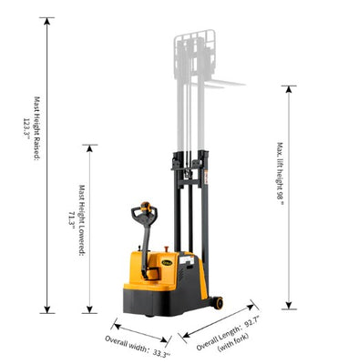 Apollolift A-3043 2200 lbs. Straddle Legs 98" High Counterbalanced Electric Stacker New