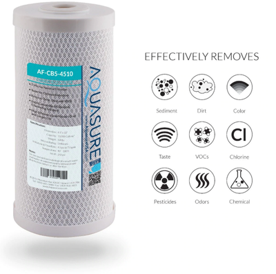 Aquasure AF-CB5-4510 Fortitude V Series 10 Inch High Flow 5 Micron Carbon Block Filter New
