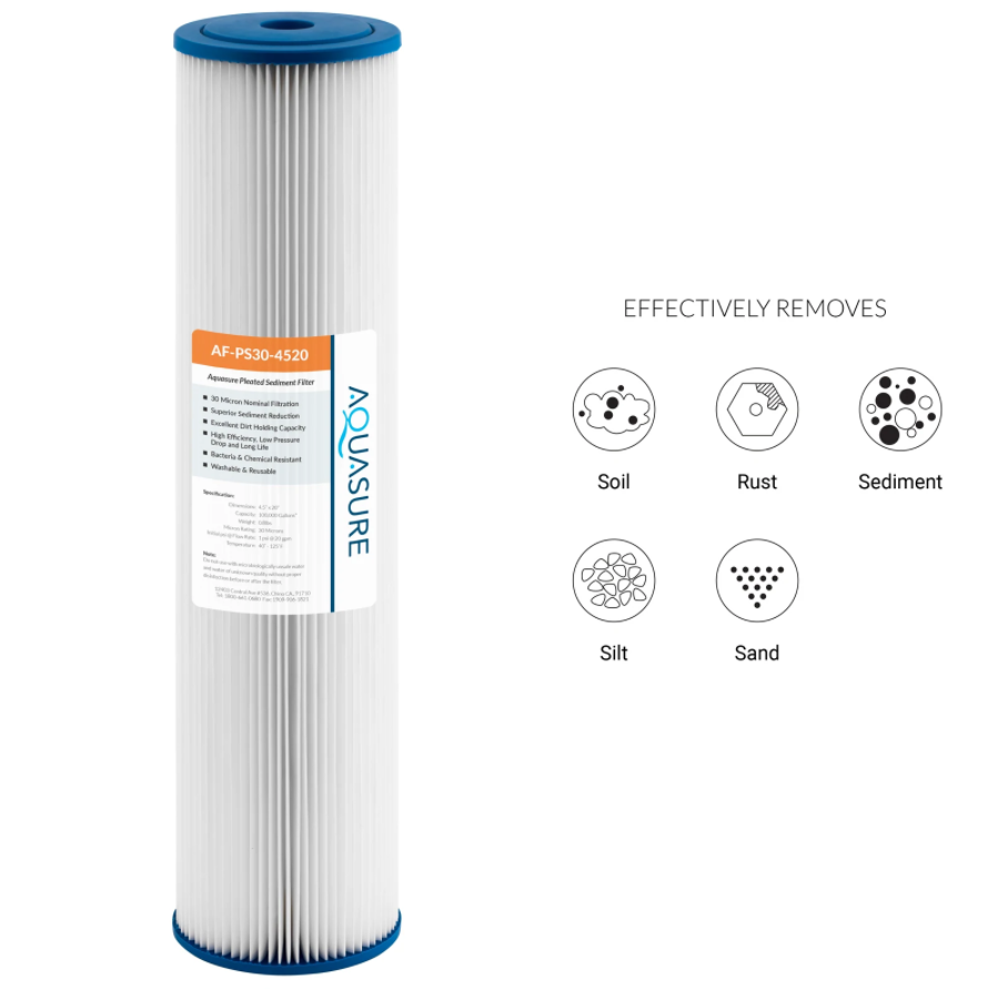 Aquasure AF-PS30-4520 Fortitude V Series 20 Inch High Flow 30 Micron Pleated Sediment Filter New