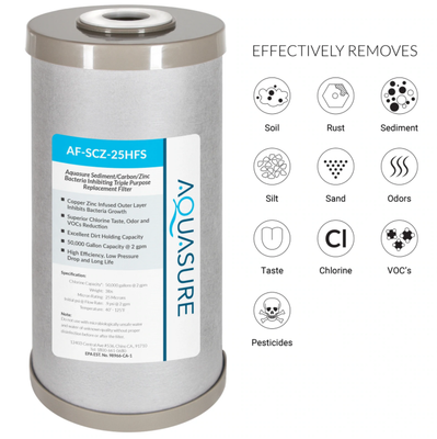 Aquasure AF-SCZ-25HFS Fortitude V2 Series Sediment/Carbon/Zinc Bacteria Inhibiting Triple Purpose Replacement Filter - Standard New