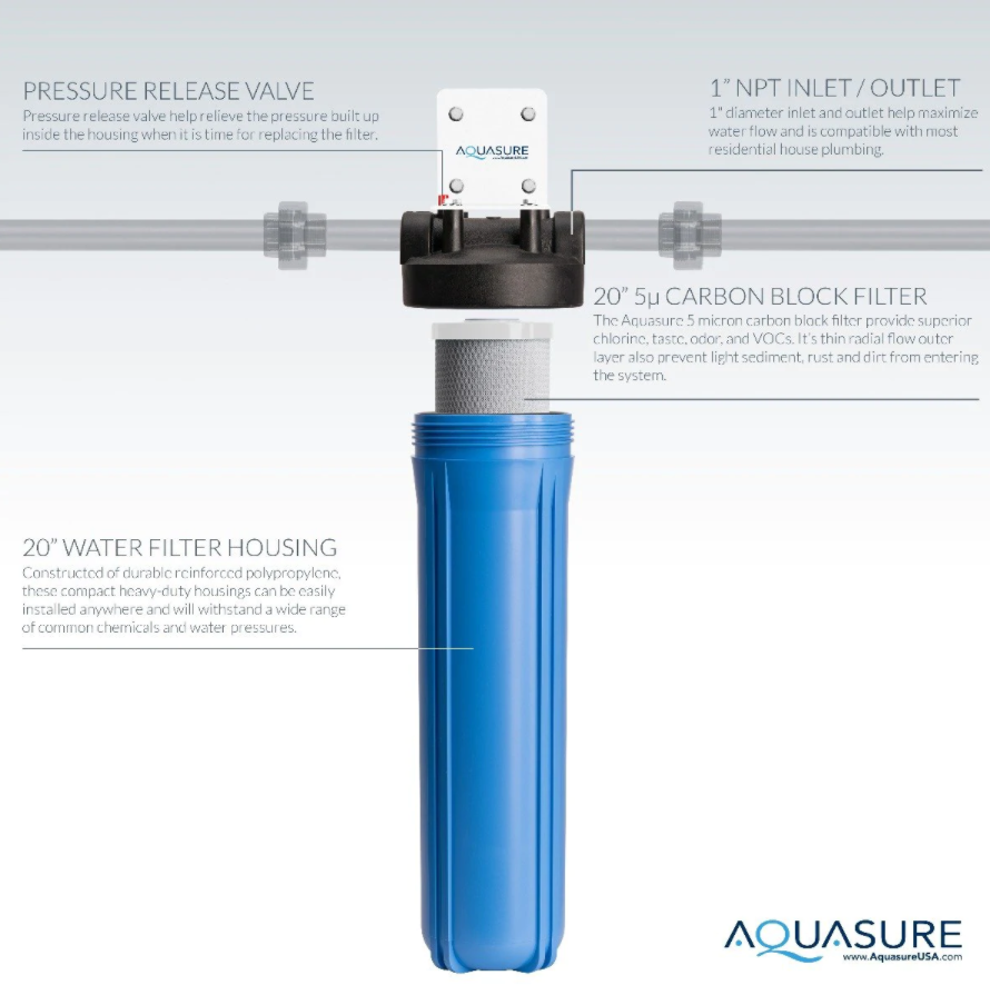 Aquasure AS-F120CB5 Fortitude V Series 20 Inch High Flow Whole House 5 Micron Carbon Block Water Filter New