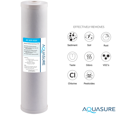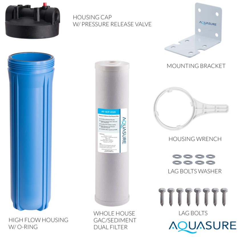 Aquasure AS-F120SCP Fortitude V Series 20 Inch High Flow Whole House Sediment And Carbon Dual Purpose Water Filter New