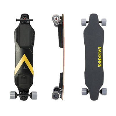 The Backfire G2t’s features a 37" superior flex 8-layer Canadian Maple Deck, a low center of gravity, and world-famous Caliber II Front Trucks, for ultimate handling and stability at high speeds. In addition to the smooth and comfortable 83mm PU Wheels that come standard, your Backfire G2t also comes with bigger and more comfortable 96mm PU Wheels, so you can customize your E-Board to your specific needs (83mm for sliding and faster acceleration, 96mm for more comfortable riding over rough surfaces). Your G2t will charge in just 2.5 hours, so you won't have to wait for adventure. The G2t is lightweight (weighing in at an incredible 14.6 lbs) yet extremely durable, capable of supporting weight up to 265 lbs. The Backfire G2t has an IP55 Waterproof Resistant Rating. With Backfire's 6 Month Warranty, you can be assured your Backfire E-Board is quality you can trust. All this makes Backfire Boards one of the fastest growing e-skateboard brands in the world. With the smart, zero-emission, real-world range, comfortable, safe Backfire G2t Electric Longboard, the world is yours.