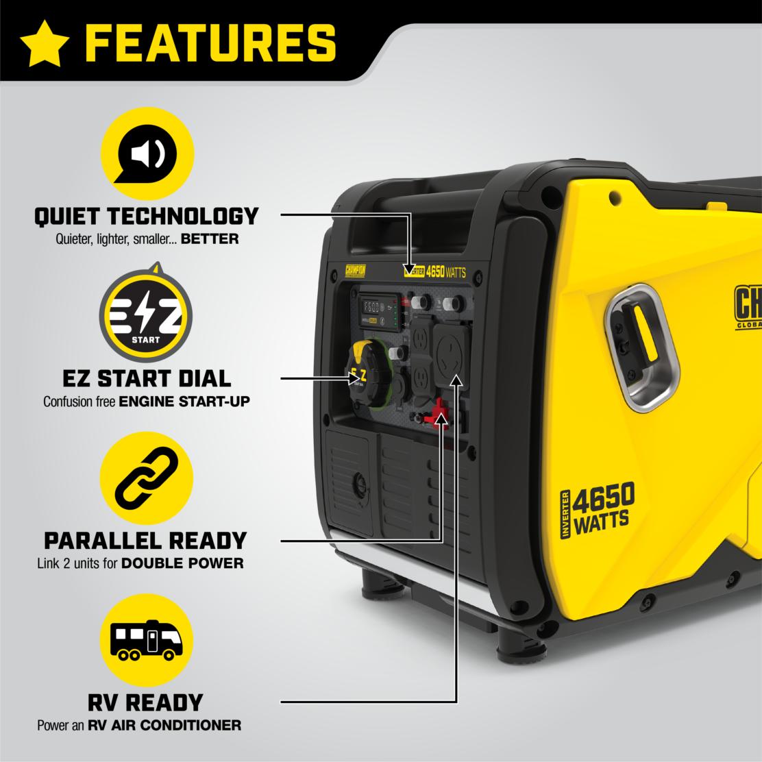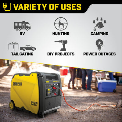 The Champion Power Equipment 4650-Watt Inverter Generator is ultra-quiet and ideal for camping, tailgating, powering items around the RV or providing backup for your essentials.