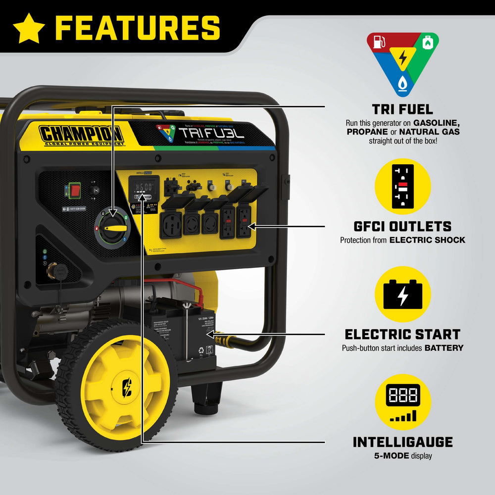 Champion 201161 12000W/15000W Generator Tri-Fuel Electric Start CO Shield Gas Propane Natural Gas New