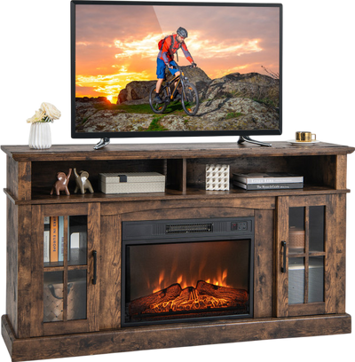 Costway Electric Fireplace TV Stand 58" with Side Cabinets and Remote Control for TVs Up to 65" New