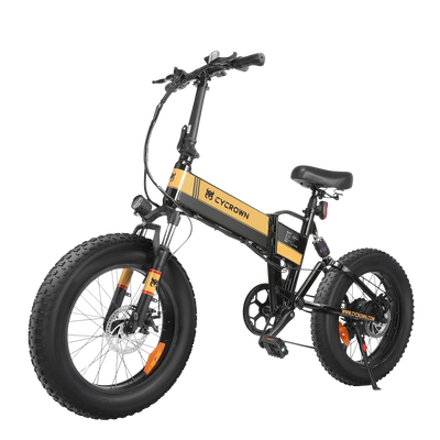 Cycrown CycKnight Fat Tire Folding Electric Bicycle 7 Speed 20" 500W Peak 750W 48V 12.5Ah Lithium Battery 20 MPH 48 Mile Range Black New Canada Only
