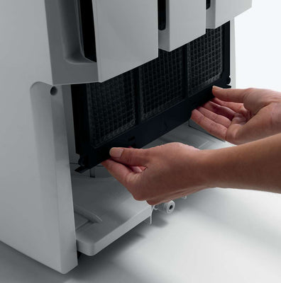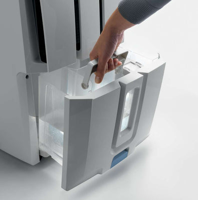 Ideal for rooms 500 to 700 sq. ft. in total area, the DeLonghi 50-Pint Dehumidifier with pump is the simple way to improve the air quality in your home without a complicated setup. You can simply select your ideal humidity level and breathe in the fresh air. It is the ultimate in home comfort convenience with its patented True Pints Per Day pump system that continuously discharges moisture so you dont have to constantly drain a water bucket. Water removal is simple: With its hassle-free pump system, simply drain the water out a window or a drain sink up to 16 feet overhead (Hose Not Included). You can also choose to drain the water passively through the 3-ft. gravity feed hose (hose not included) or simply empty the water into the removable water tank, which is frontally located for easy access. The transparent water level window lets you see how much water has been collected if using the tank option. The DeLonghi 50-Pint Dehumidifier also features LCD electronic controls that allow you to select the ideal humidity level by adjusting the humidistat, a 24-hour on/off timer, antifrost setting and 2-speed fan.