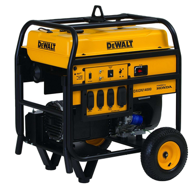 The DEWALT DXGN14000 is designed with the professional contractor or rental operator in mind. This unit is powered by a 688cc Honda GX630 electric start OHV engine with auto shut off for low oil. The premium alternator provides low harmonic distortion. The large 10 Gal. tank with fuel gauge runs up to 8 hours at 50% load. Wheel kit and battery are included.