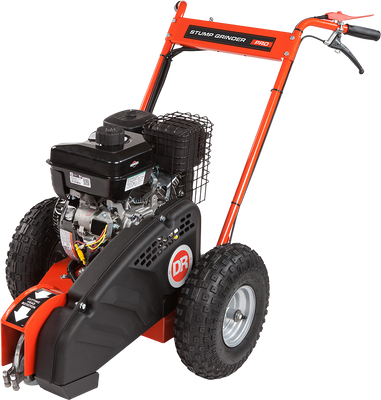 - Simple hand controls- Control the wheel brakes and engine throttle right from the handle bars. Lock one wheel in place while you pivot the machine back and forth to grind away a stump. Unlock and reposition as needed, right from your working position.