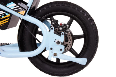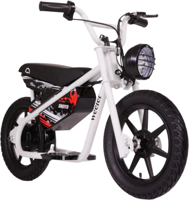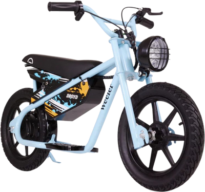 The Droyd Weeler is a fun and safe electric bike for ages 6 and up that's ready to take your growing rider on all sorts of adventures. Simple to set up and ride, the Weeler is equipped with a lithium-ion battery that runs for up to 45 minutes, and two maximum speed limit settings of 6.2 mph (low) and 10 mph (high) using the parental control speed limit key. With safety as the top priority, the Weeler includes parental speed controls, slow start mechanism, brushless motor, and an easy-to-use accelerator throttle.