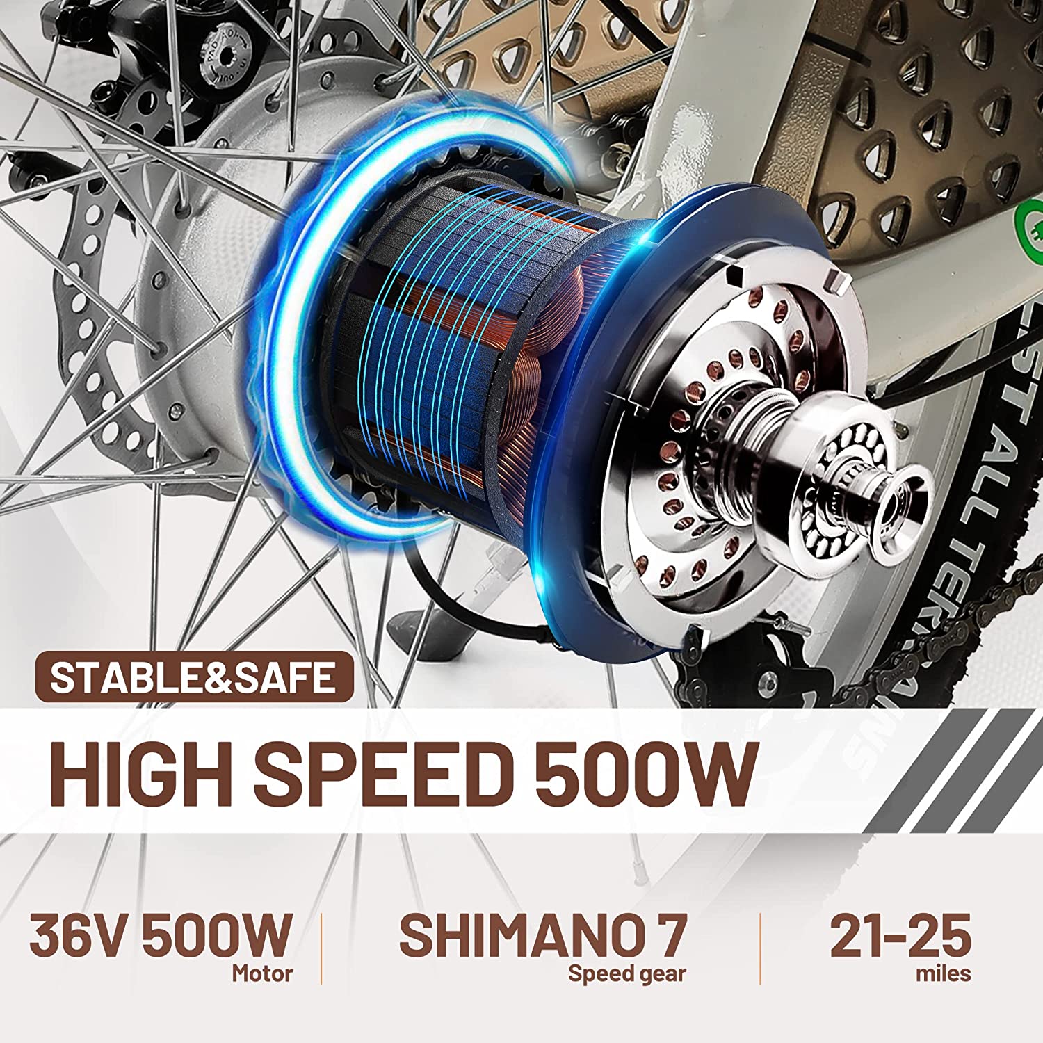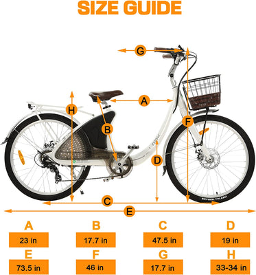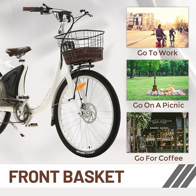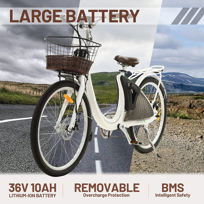 Ecotric Lark E-Bike 36V 10AH 500W 20 MPH City Bike For Women with Basket and Rear Rack White NS-LAK26LCD-W New
