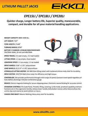 Ekko EPE20LI Lithium Iron Phosphate Pallet Jack 4400 lb Capacity New