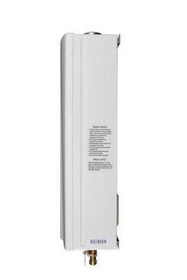 The EZ Deluxe is a whole home water heater designed for the typical household of 1-2 bathrooms. Averaging between 3 - 4 gallons per minute, it supplies more than enough hot water to run any one hot water tap at a time, and in some cases two. The EZ Deluxe is also a self regulating water heater, meaning the heater automatically adjusts the burners according to the water flow to ensure the desired temperature is reached at your tap. For instance, the average sink tap runs about 1 gallon per minute while the average shower head runs about 1.7 - 2 gallons per minute. With the EZ Deluxe you simply set the temperature on the screen and the unit does the rest of the work for you!