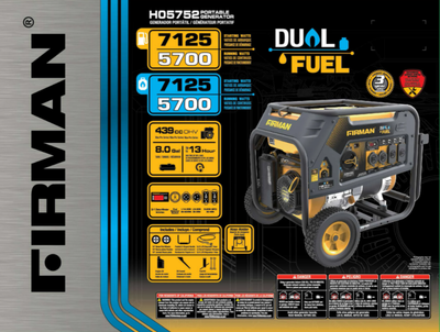Firman H05752 5700W/7125W 30 Amp Recoil Start Dual Fuel Portable Generator New