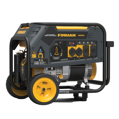 Our rubberized Thresher handle makes recoil starting a snap – even with bulky gloves. All of our Hybrid Series Generators run on gasoline or propane fuel giving you flexibility while out on the road or during an emergency. H05752 comes standard with extended propane hose 5.5ft for convenience when running off a larger propane tank. The Firman Volt Lock automatic voltage regulator ensures clean consistent power output from the Firman Power Stream alternator. For the ultimate in portability the H05752 includes a wheel kit featuring 10” never-flat wheels and a u-shaped padded handle with ergonomic grip.