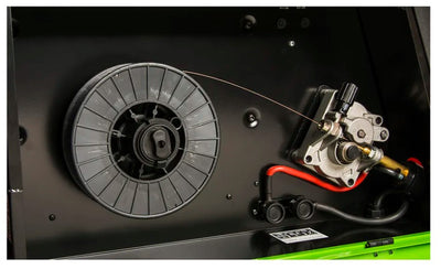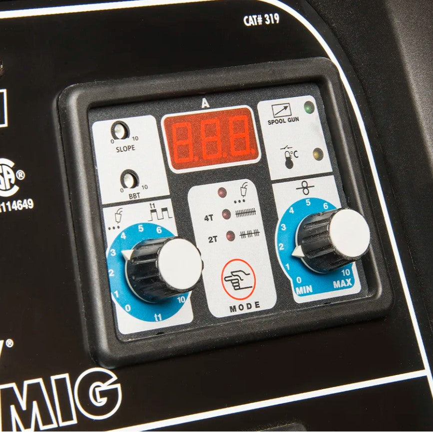 The Forney 270 MIG offers quality features like spool gun capability, quick Euro style disconnect torch, MIG gun with 15ft lead, aluminum feed/drive system, multiple trigger modes, high output and duty cycle with a full size cabinet.