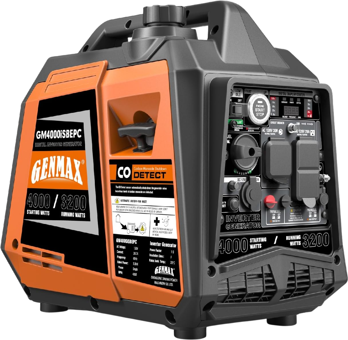 GENMAX GM4000iSBEPC 3200W/4000W 26.7 Amp Electric Start Gas Inverter Generator Parallel Ready with CO Detect New