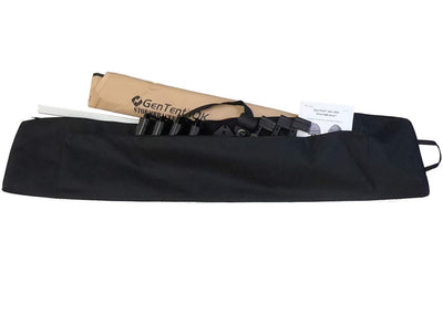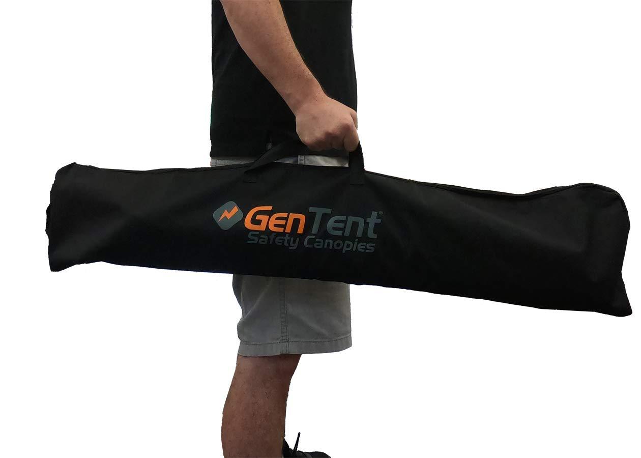 The perfect accessory for storing or transporting your GenTent Safety Canopy. This version of the Storage Bag will fit any GenTent 10k model. Made of heavyweight ballistic 6800D polyester fabric. This bag has room for the GenTent canopy, electrical covering aprons, & frame rods in the main pocket. In addition the 10K Storage Bag allows you to neatly store your clamps and/or ratchets in the separate front zipper pocket. Complete with two carrying handles as well as a hanging loop on the end of the bag for multiple options on how to store your product. |