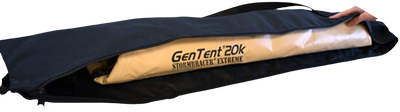 The perfect accessory for storing or transporting your GenTent Safety Canopy. This version of the Storage Bag will fit any GenTent 20k model. Made of long lasting heavyweight Cordura breathable fabric. This bag has room for the GenTent canopy, electrical covering aprons, frame rods, clamps, and/or ratchets. The shoulder strap is convenient for carrying your GenTent kit and can be used to hang the 20K Storage Bag as well. |