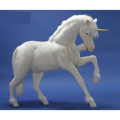 Let your imagination run wild and free with this Realistic Unicorn Stuffed Animal. Made to educate, to provide creative play, and to wow collectors of all ages, artists created this animal from portraits of the creature in its natural habitat. Its coat was meticulously hand-cut and trimmed, not stamped out by machine. It was sewn inside out, resulting in the minimization of seams. The subtle coloring on the animal was hand painted or airbrushed by specially trained Hansa artisans. It was created with custom-designed plush material made from high pile 100% Modacrylic fiber.