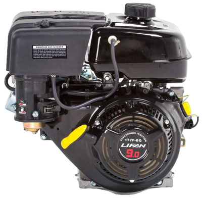 The LF177F-BQ engine is 270 cc - 9 HP recoil start engine that comes with a low oil shutdown for protection. The design features a universal mounting bolt pattern. It also has a 1" horizontal output shaft. It is EPA approved. This engine is built with automotive grade parts. The warranty is 3 years for residential and 1 year commercial use. Parts to maintain and repair Lifan engines and equipment are available upon special request.