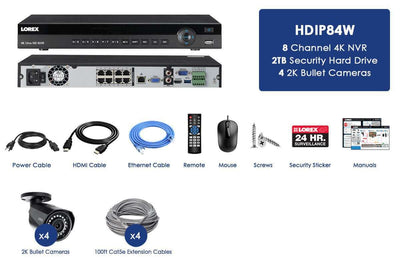 Lorex HDIP84W 4 MP Outdoor 4 Camera 8 Channel 2K Surveillance Security System New