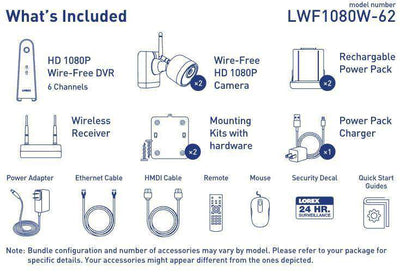 Lorex LWF1080W-62 Wire Free Battery Powered 2 Camera 6 Channel Indoor/Outdoor Security Surveillance System New