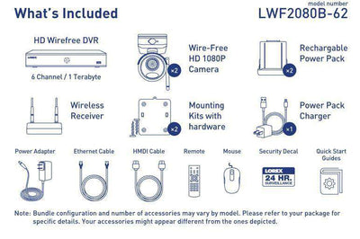 Lorex LWF2080B-62 Wire Free Battery Two-Way Audio 2 Camera 6 Channel Indoor/Outdoor Security Surveillance System New