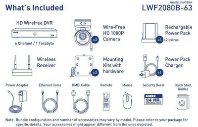Lorex LWF2080B-63 Wire Free Battery Two-Way Audio 3 Camera 6 Channel Indoor/Outdoor Security Surveillance System New