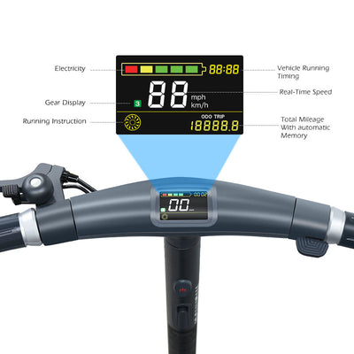 • Visual LCD exquisite interactive dashboard, High-precision craft that maximizes the sense of fashion and technology. Real-time display, speed, power, mileage... are all at a glance. Various functions can be operated by one button or by APP,