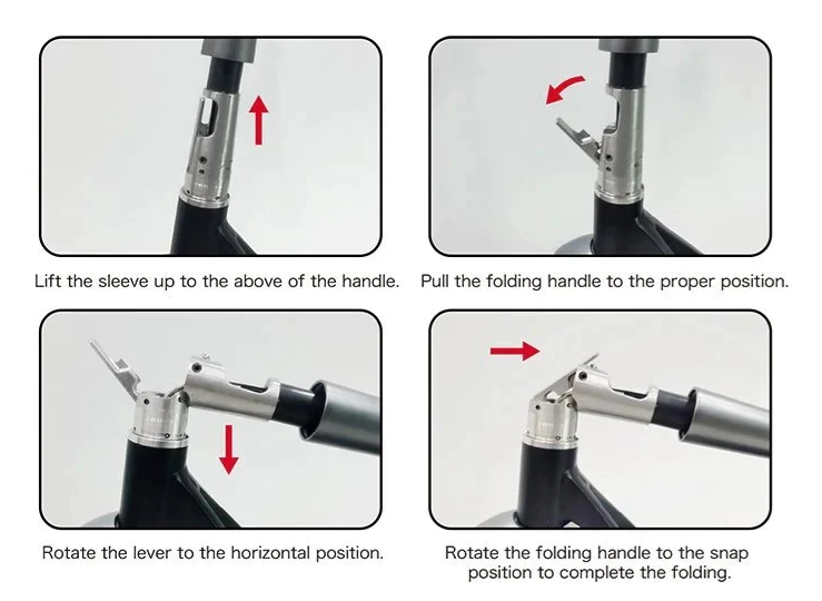 • Easy to fold, easy to carry,  Unique original sleeve fully hidden folding design, fast folding in 3 seconds, It only takes a few simple push and pull steps to complete the folding, Carrying, storing or placing it in the trunk of the bike are sample and easy.