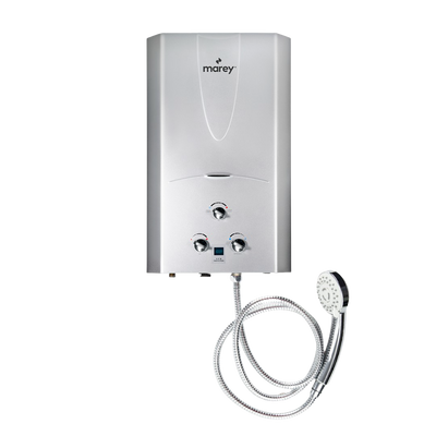 Marey 4.2 GPM, 16L natural gas tankless water heater is a great whole house water heating solution perfect for cabins, horse stables, and mid-size homes. No electricity is required, the unit ignites with 2 D cell batteries, so it is ideal for off-the-grid areas or any other location where electricity is not available.