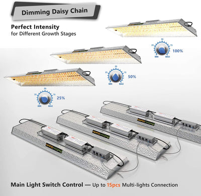 • Sun Like Full Spectrum LED Indoor Growing – Infinite close to natural sun light, suitable for all plants and stages of growing. Allows you to achieve maximum quality and quantity - much greater than traditional HPS growing systems.