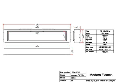 Modern Flames 100 Inch Landscape Full View 2 Series Electric Fireplace New