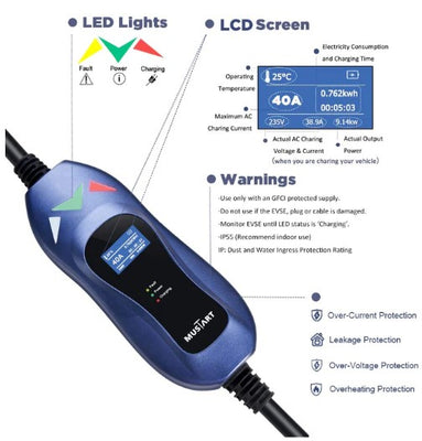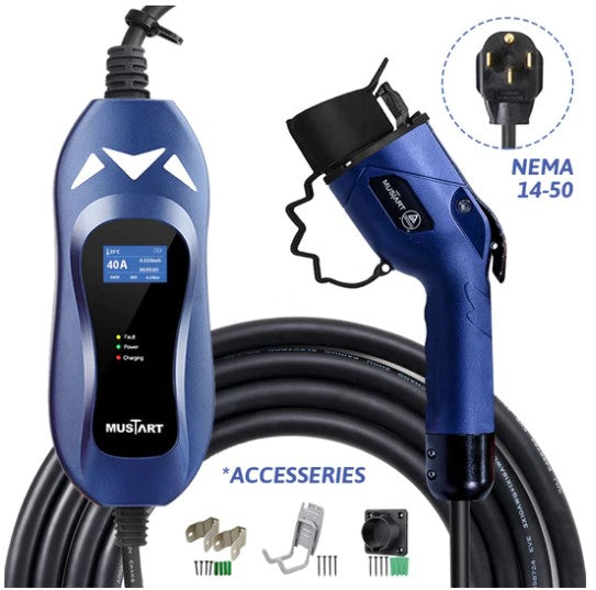 Mustart Power 40A 25' Cable NEMA 14-50P Level 2 Portable EV Charger New