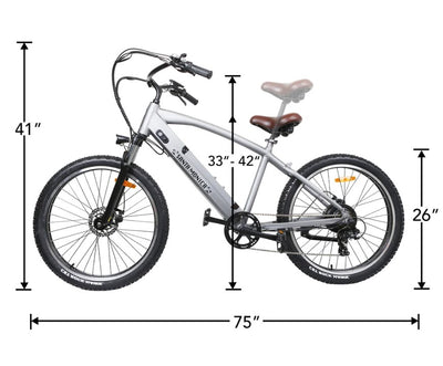 All Terrain. All Weather. Experience the streamline and texture that really make pleasing to the eye. It is not hard to love riding the Nakto Santa Monica Bike. It features a timeless cruiser frame and a powerful 500-watt hub motor with 750W peak that guarantees an exciting ride.