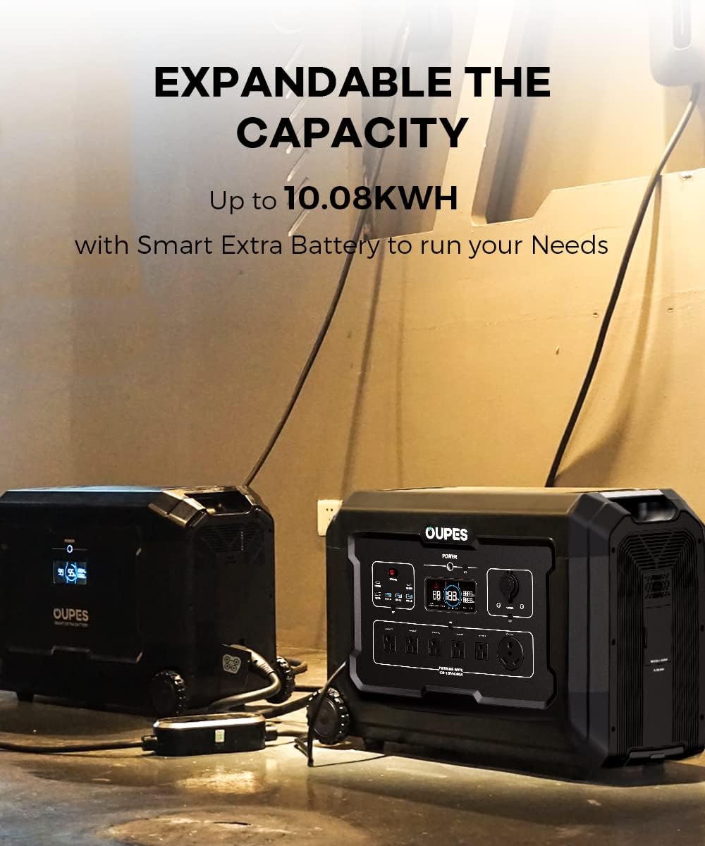 The OUPES B5 Battery is an extra battery for the MEGA 5 Portable Power Station that will double your capacity from 5.04kWh to 10.08kWh. Features Smart App Control by using the OUPES app via WIFI or Bluetooth.